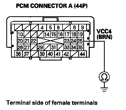 80. Check for continuity between PCM connector terminal A25 and body ground.