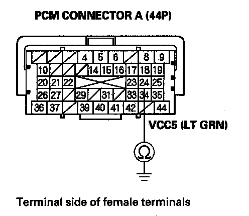 61. Measure voltage between PCM connector terminal C36 and body ground.