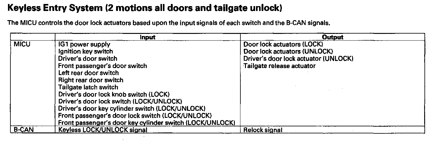 Keyless Entry System (2 motions all doors and tailgate unlock)