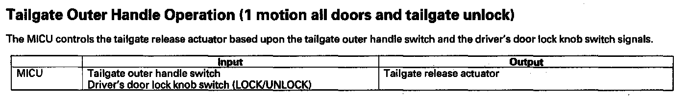 Tailgate Outer Handle Operation (1 motion all doors and tailgate unlock)