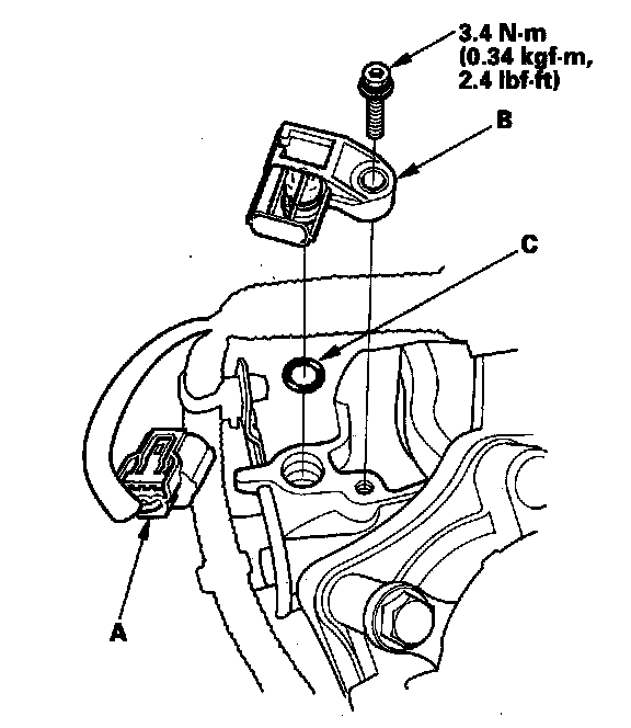 Install the parts in the reverse order of removal with a new O-ring (C).