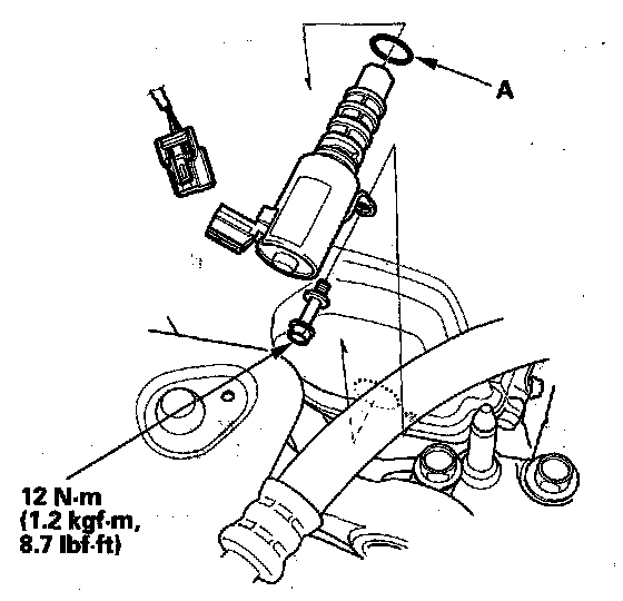 VTC Oil Control Solenoid Valve Removal/Test/Installation1. Disconnect the VTC oil control solenoid valve 2P connector (A).