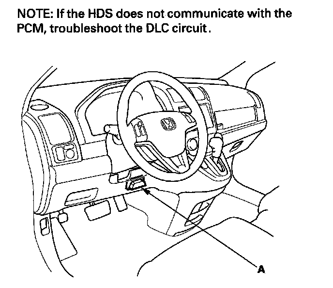 6. Turn off the engine, and connect the HDS to the DLC (A).
