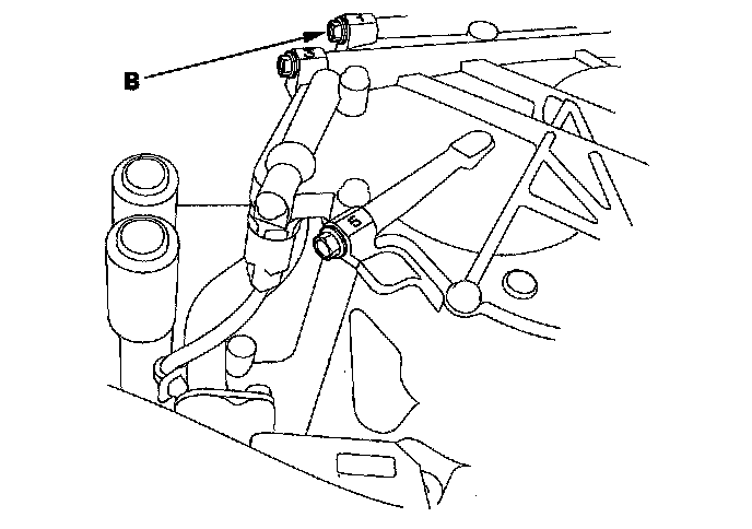 13. Shift to 1, and measure the 1st clutch pressure at the 1st clutch pressure inspection port (B) while holding the engine speed at 2,000 rpm.