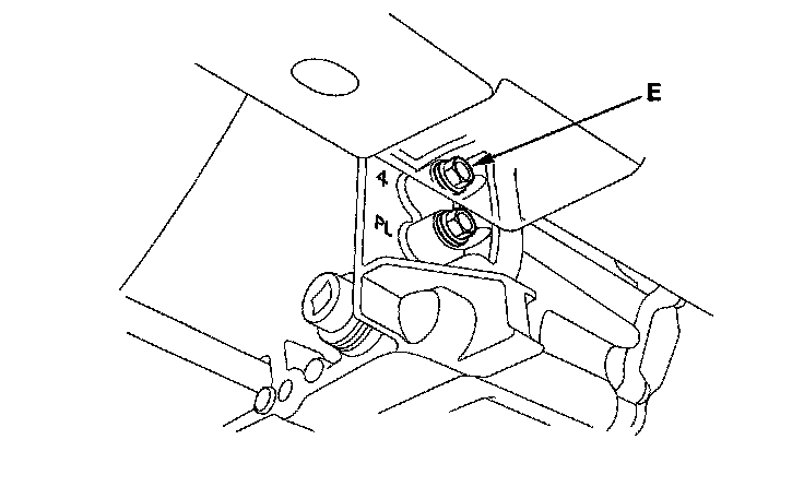 23. Release the D3 driving mode by pressing the D3 switch, and measure the 4th clutch pressure at the 4th clutch pressure inspection port (E) while holding the engine speed at 2,000 rpm.