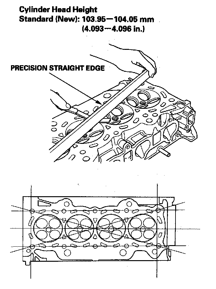 If warpage is less than 0.05 mm (0.002 in.) cylinder head resurfacing is not required.