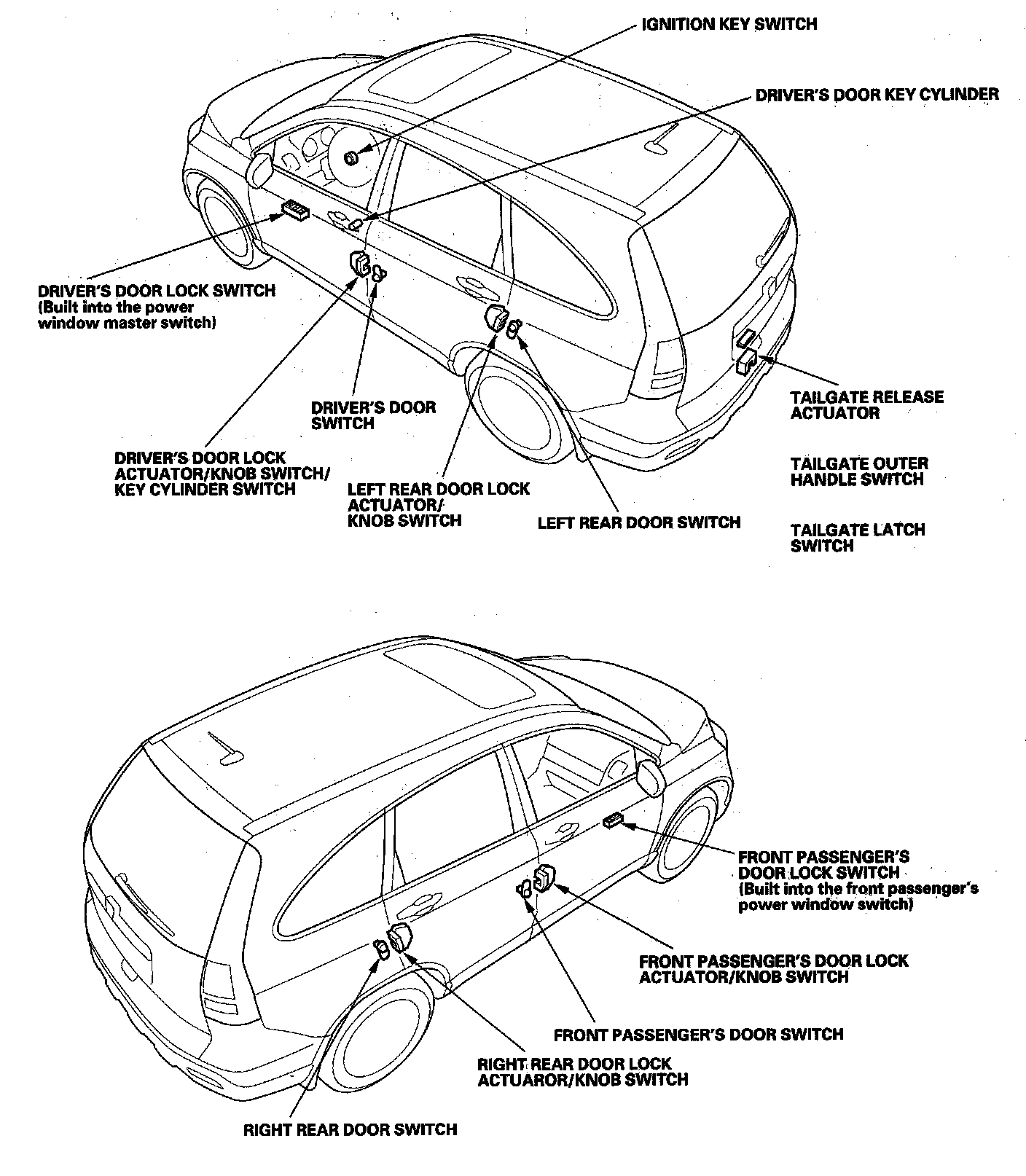 Keyless/Power Door Locks/Security System Component Location Index: