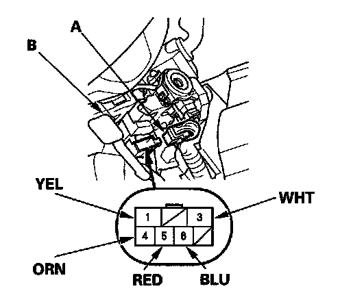 4. Disconnect the 7P connector (A) from the ignition switch (B).