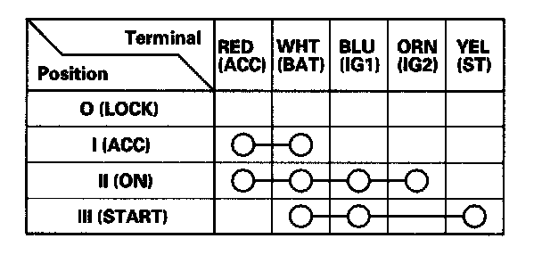 6. If the continuity checks do not agree with the table, replace the ignition switch.
