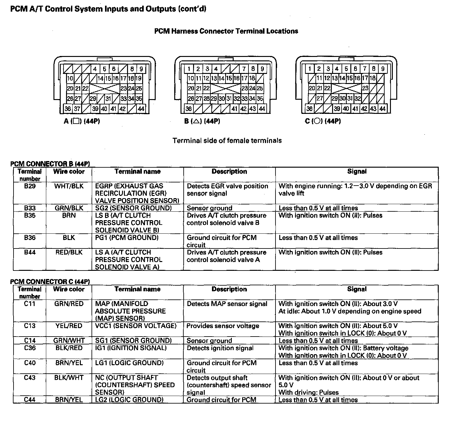 PCM A/T Control System Inputs And Outputs (Part 3):