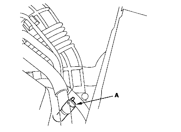 8. If necessary, fill the transmission with ATF through the dipstick guide tube opening (A) to bring the fluid level midway between the upper mark and the lower mark of the dipstick. Do not fill past the upper mark. Always use Honda ATF DW-1 (ATF DW-1 has been replaced with ATF DW-1, Honda Service News Nov 2010) Automatic Transmission Fluid (ATF). Using a non-Honda ATF can affect shift quality.