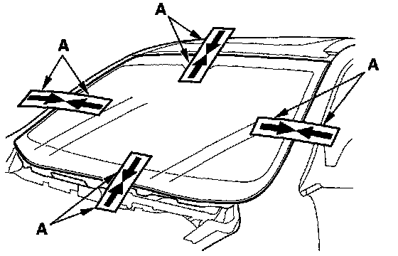 3. If the old windshield is to be reinstalled, make alignment marks (A) across the glass and body with a grease pencil.