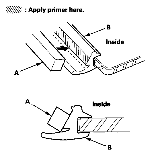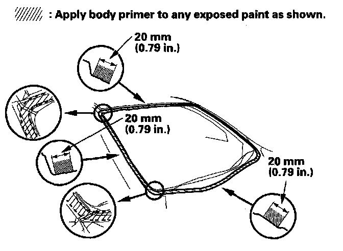 - Never touch the primed surfaces with your hands. If you do, the adhesive may not bond to the windshield properly, causing a leak after the windshield is installed.