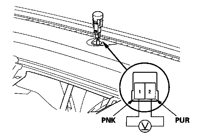 3. Turn the ignition switch to ON (II). Measure the voltage between the terminals with the (+) probe on the No. 2 terminal and the (-) probe on the No.1 terminal with the connector connected.
