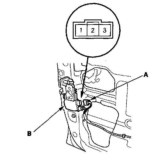 2. Disconnect the 3P connector (A) from the driver's door lock actuator (B).