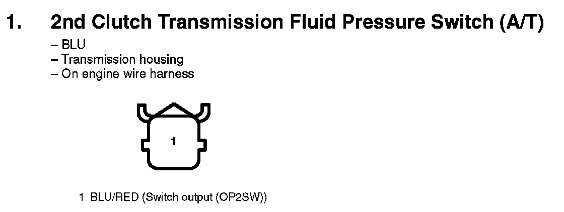 1. 2nd Clutch Transmission Fluid Pressure Switch (A/T):