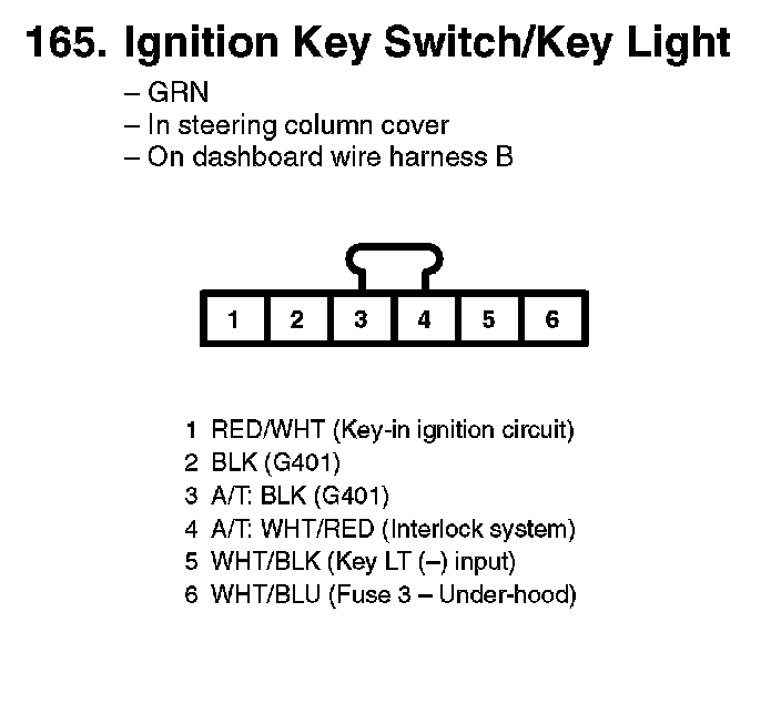 165. Ignition Key Switch/Key Light: