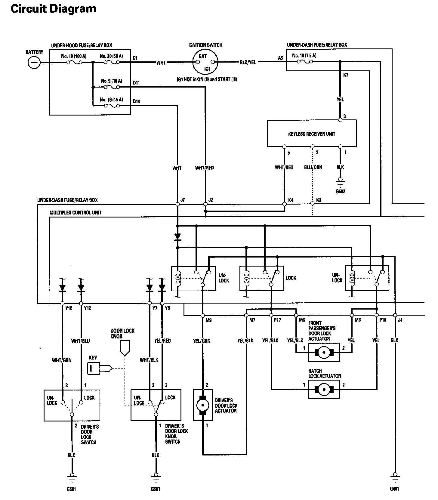 Keyless/Power Door Lock System Circuit Diagram