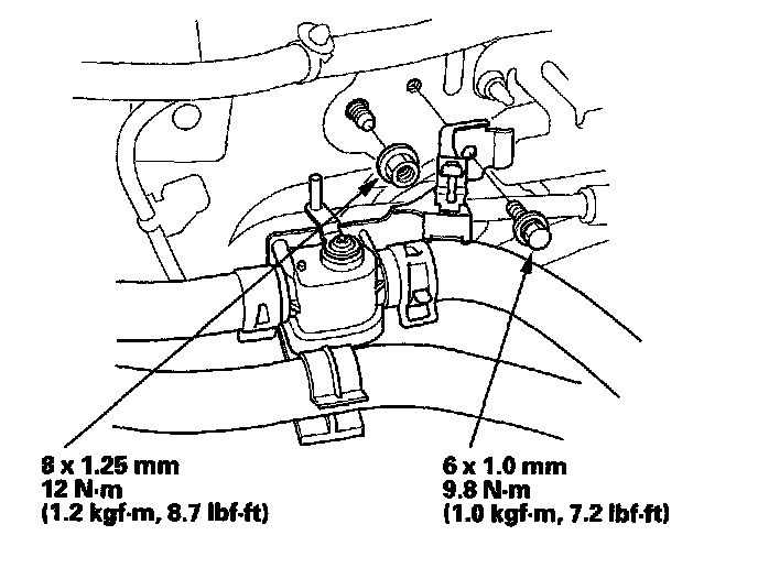 7. Remove the mounting bolt and the heater valve as shown. Remove the mounting nut from the heater unit. Take care not to damage or bend the fuel lines and the brake lines, etc..