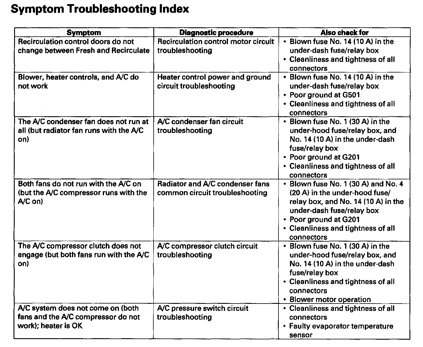 Symptom Troubleshooting Index: