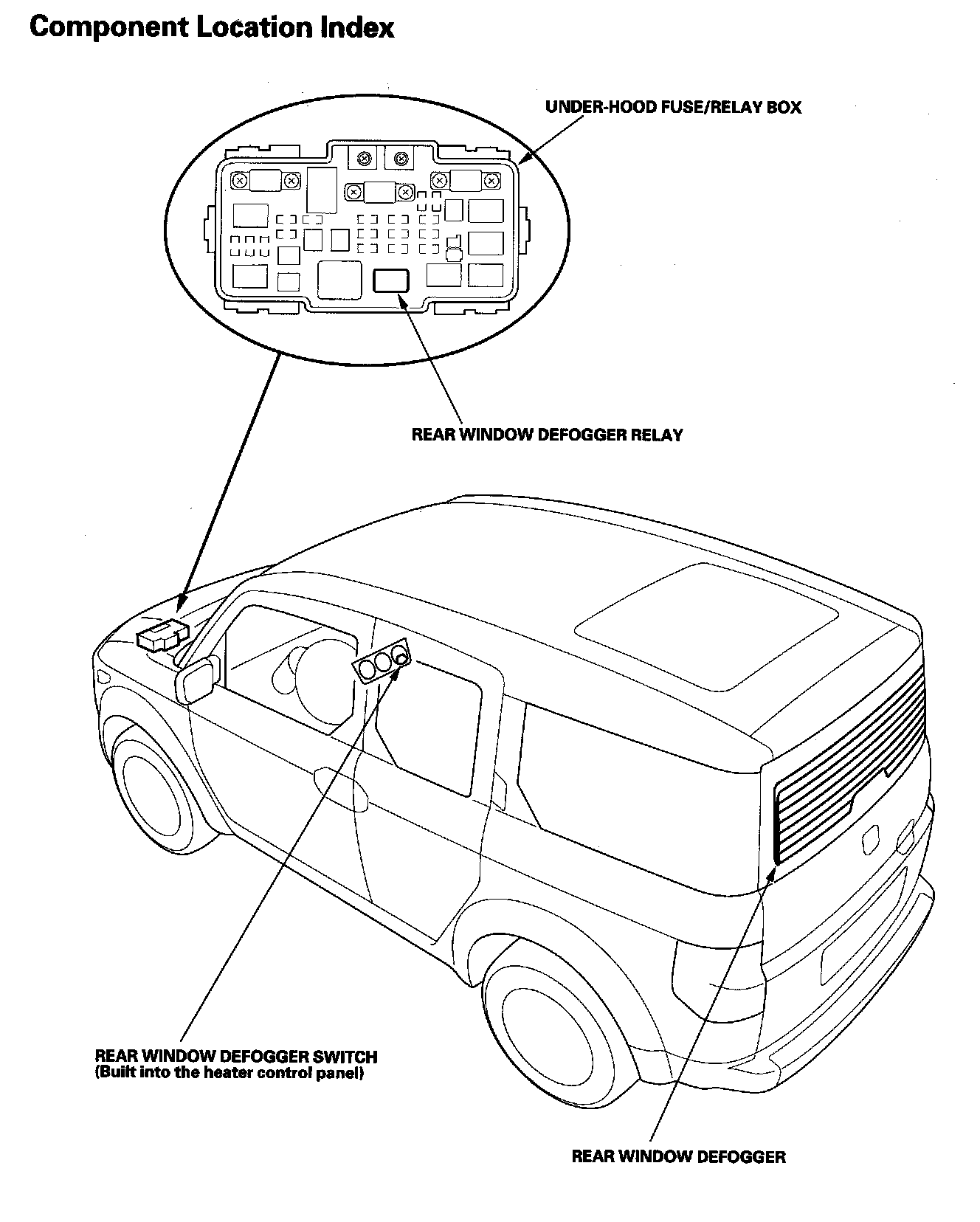 Rear Window Defogger Component Location Index: