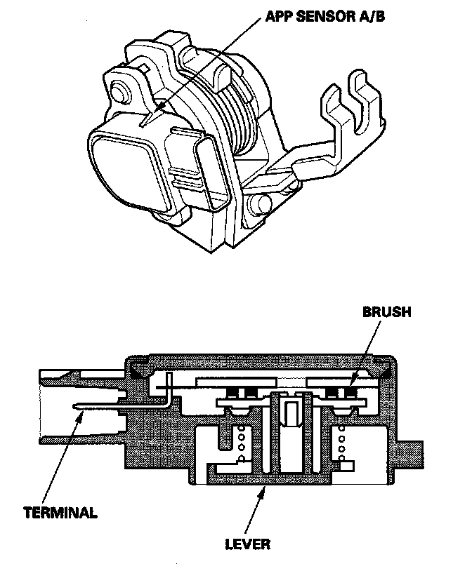 As the accelerator pedal position changes, the sensor varies the signal voltage to the ECM/PCM.