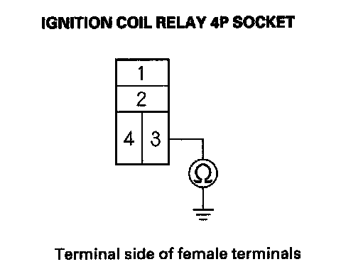 11. Check for continuity between ignition coil relay 4P socket terminal No. 3 and body ground.