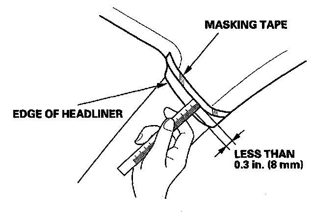 To prevent the side curtain airbag from deploying and damaging the pillar trim, the overlap between the headliner and pillar trim must be less then 0.3 in. (8 mm). To check the overlap, do this: