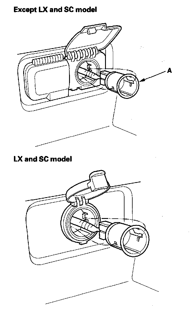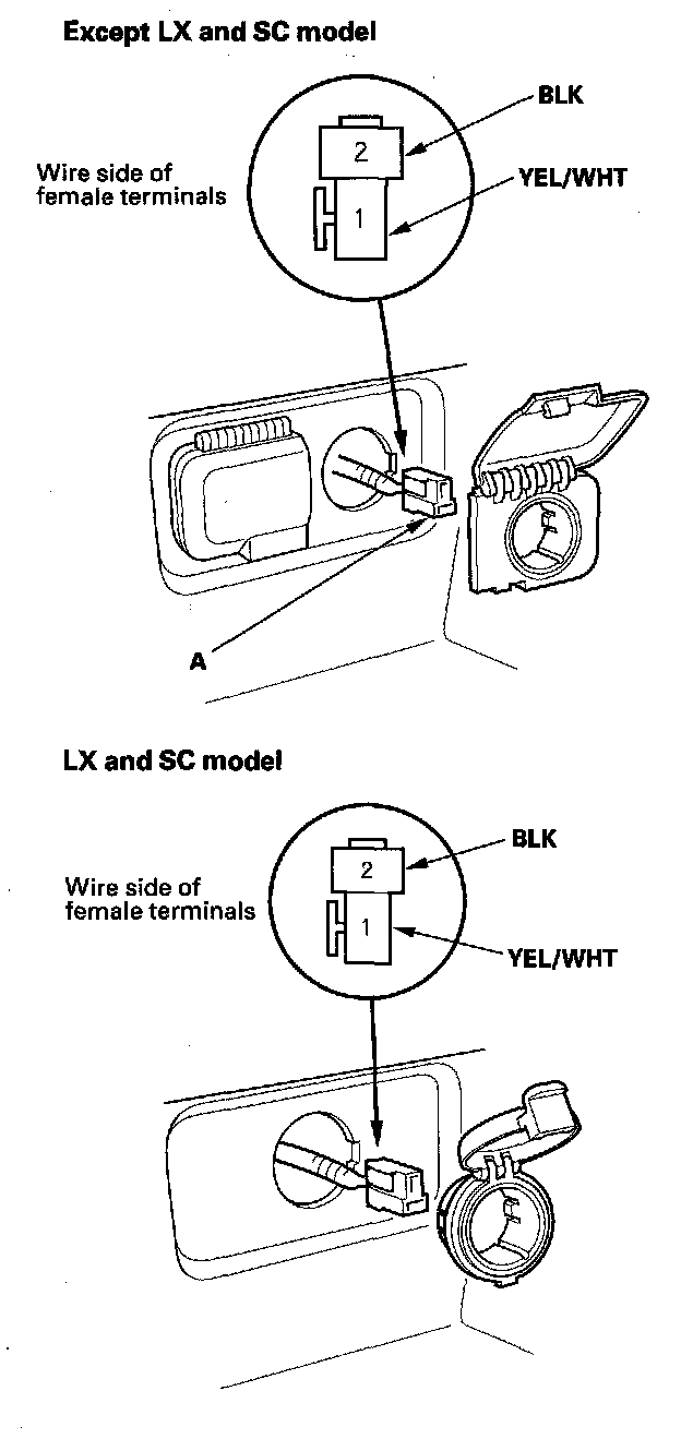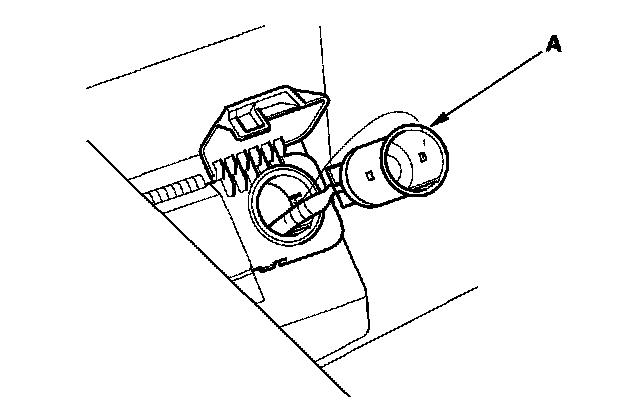 1. Carefully pry the accessory power socket (A) out from the right rear side trim panel.