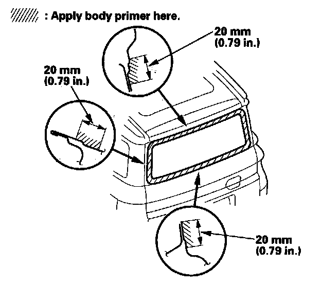 - Never touch the primed surfaces with your hands. If you do, the adhesive may not bond to the rear window properly, causing a leak after the rear window is installed.