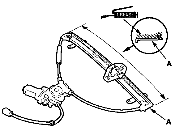 5. Apply multipurpose grease to all the sliding surfaces of the regulator (A) where shown.