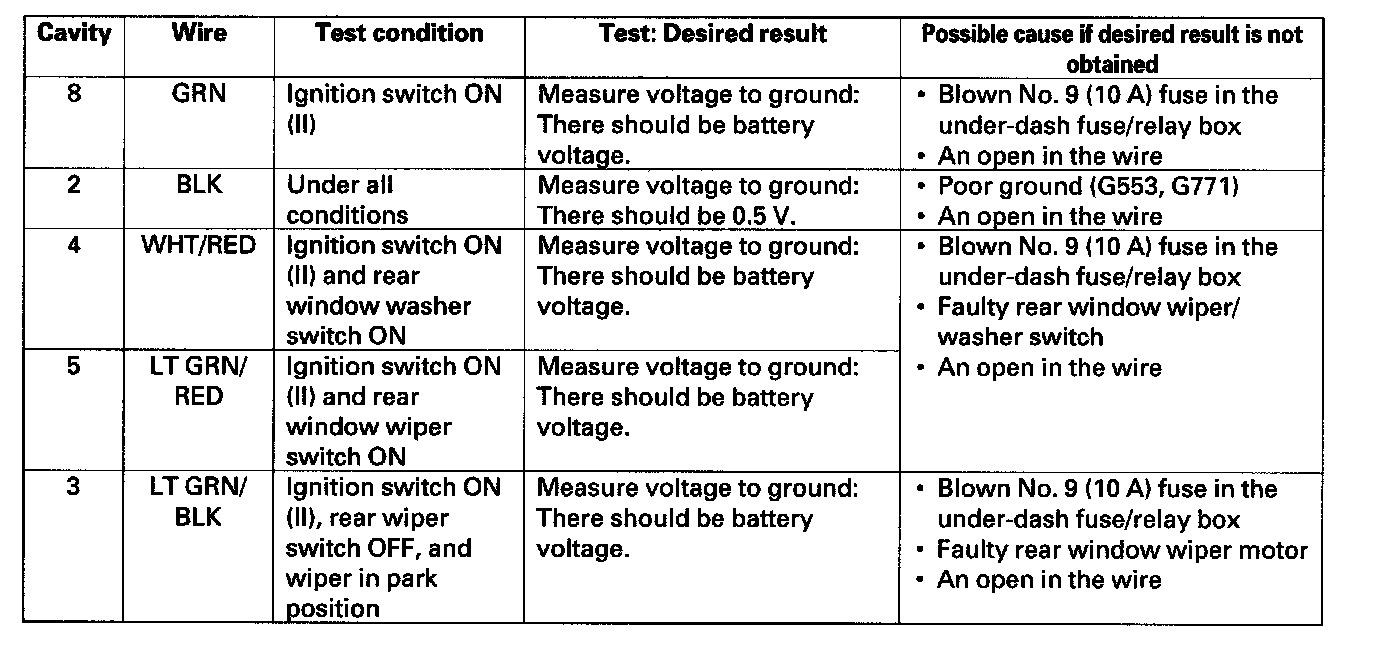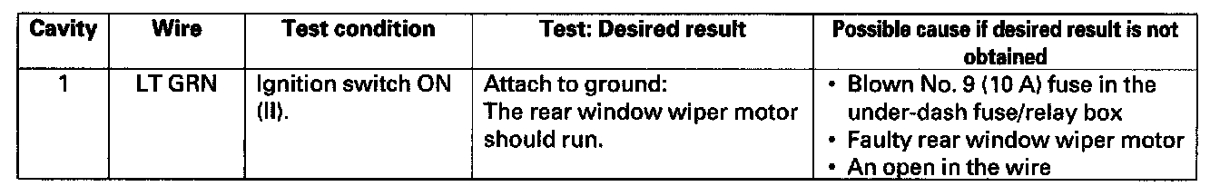 Rear Window Wiper Control Unit Input Test