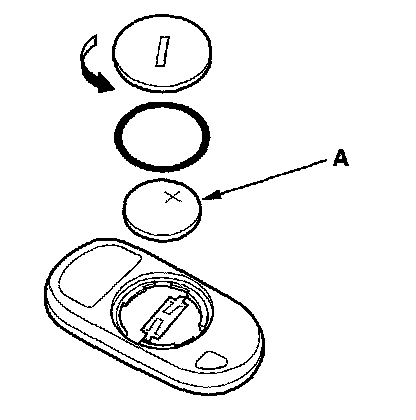 3. Replace the transmitter battery (A) with a new one, and try to lock and unlock the doors with the transmitter by pressing the lock or unlock button five or six times.