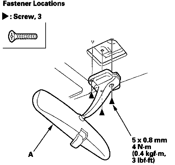 2. Remove the screws, then remove the rearview mirror (A).