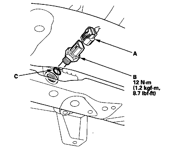 5. Install the parts in the reverse order of removal with a new O-ring (C) coated with clean engine oil, then refill the radiator with engine coolant.