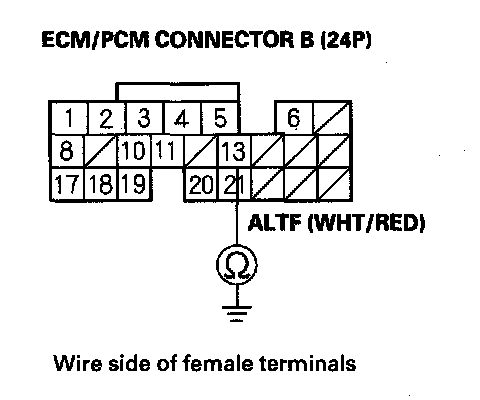 8. Check for continuity between body ground and ECM/PCM connector terminal B13.
