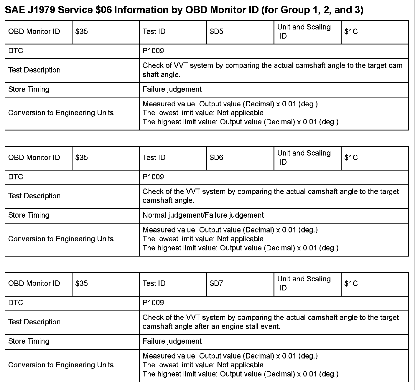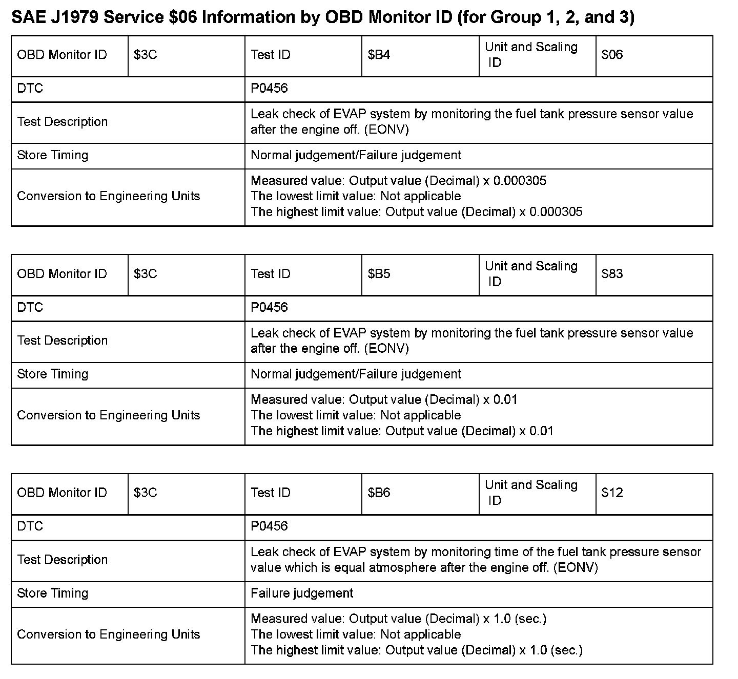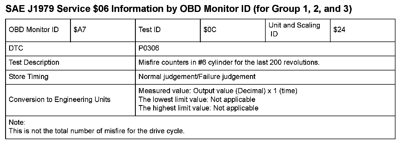 SAE J1979 Mode $06 Test Information: All 2008 Hondas