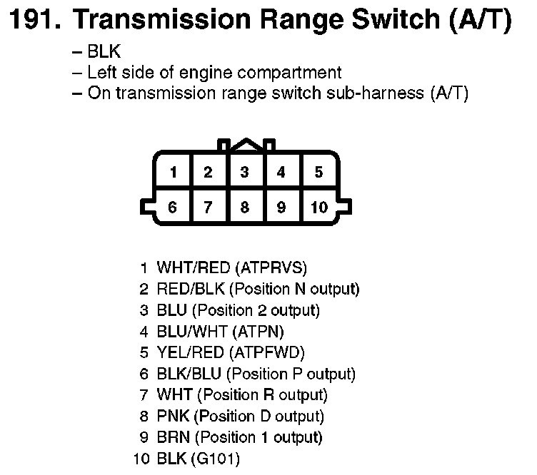 191. Transmission Range Switch (A/T):