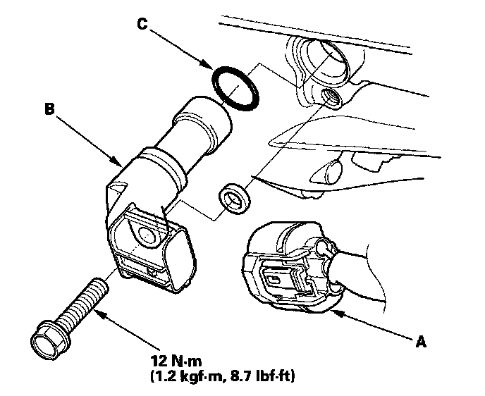4. Install the parts in the reverse order of removal with a new O-ring (C) coated with clean engine oil.
