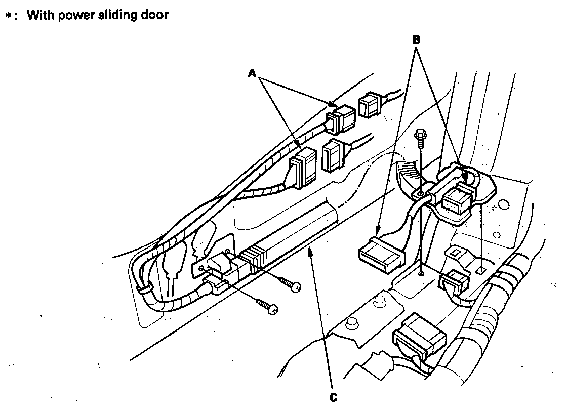 2. Disconnect the 16P* and 8P connectors (A) from the sliding door wire harness.