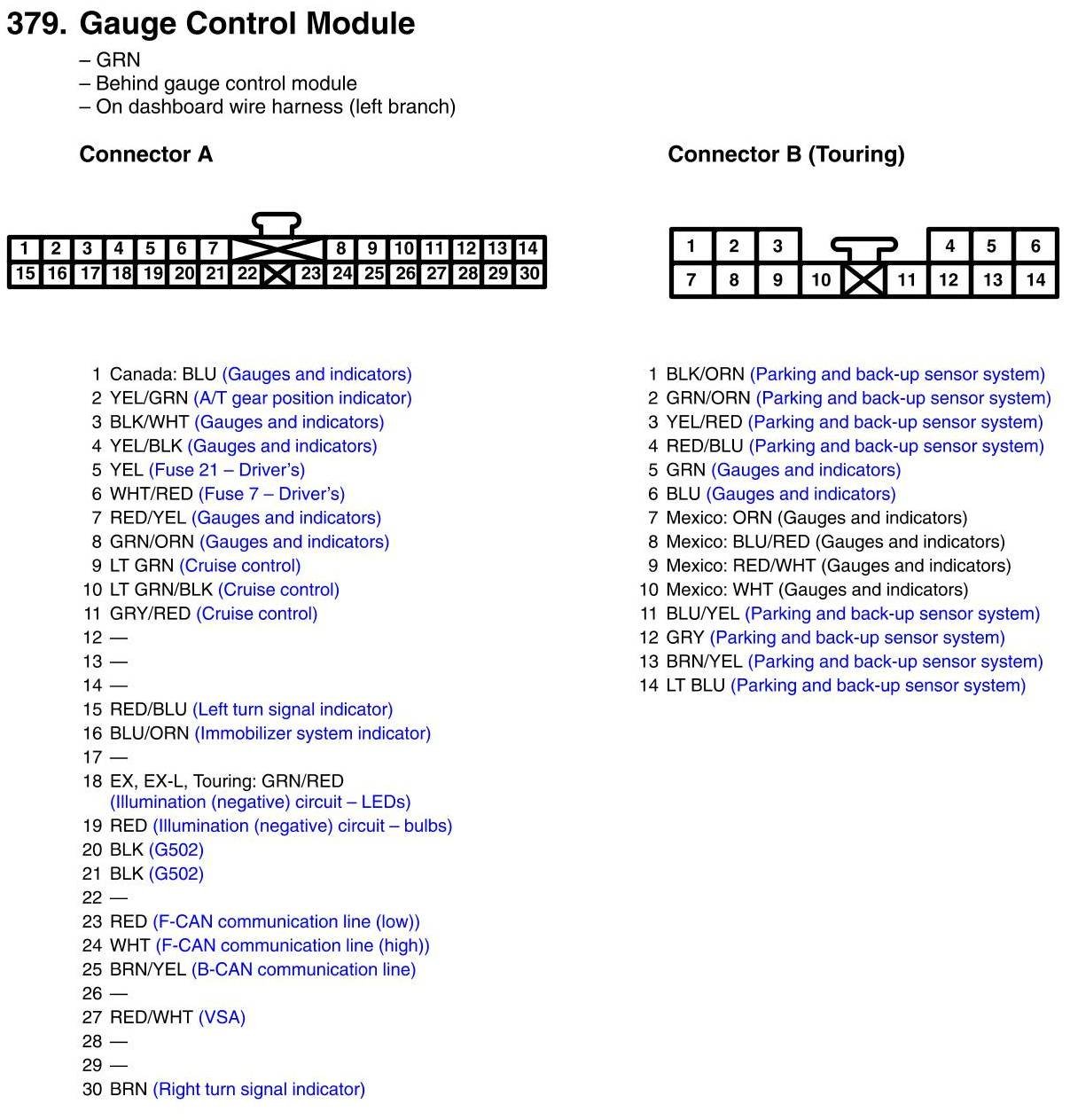 View 379 - Gauge Control Module Connector View