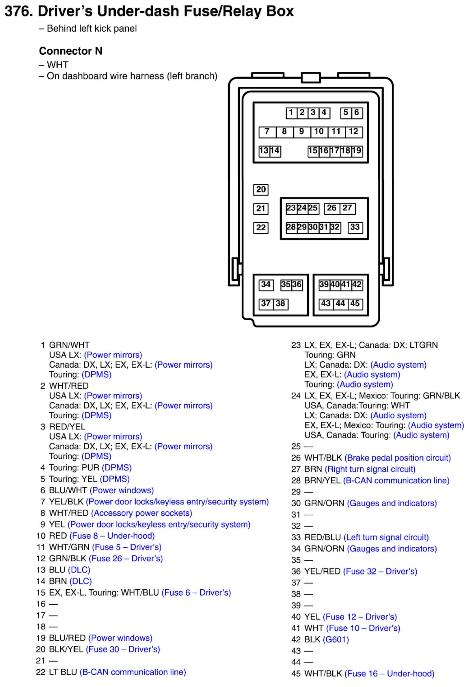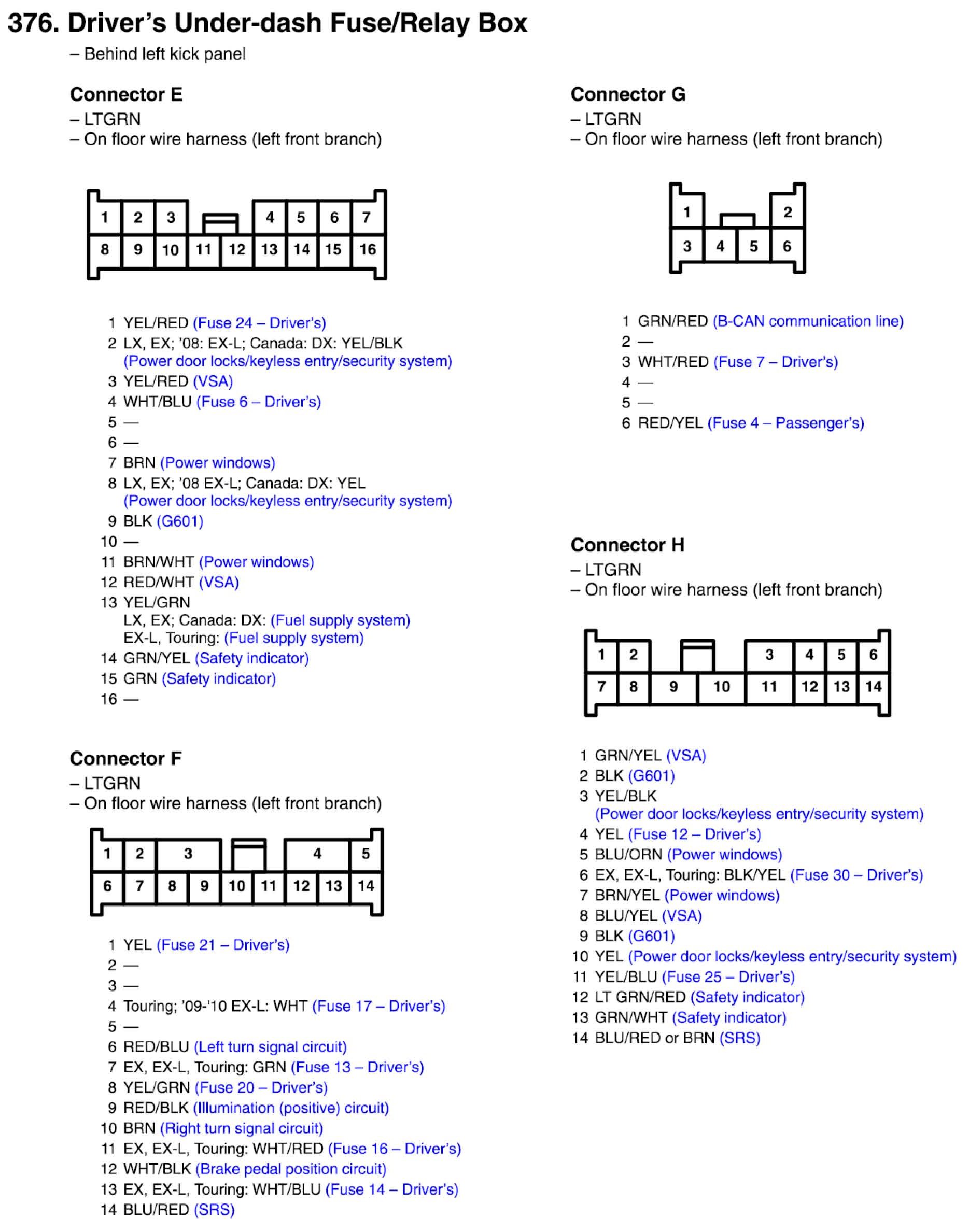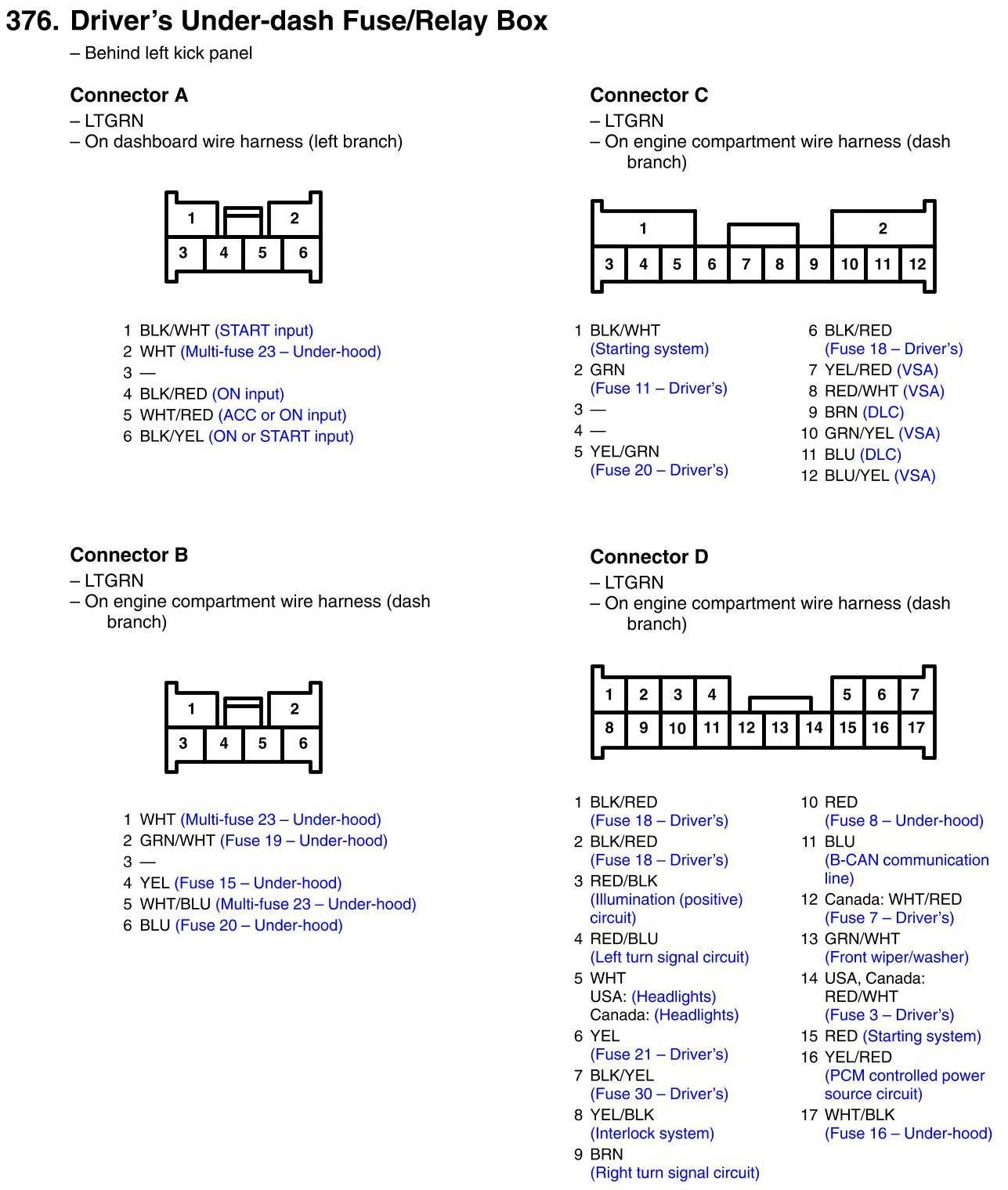 Driver's Under-dash Fuse/Relay Box Connector View