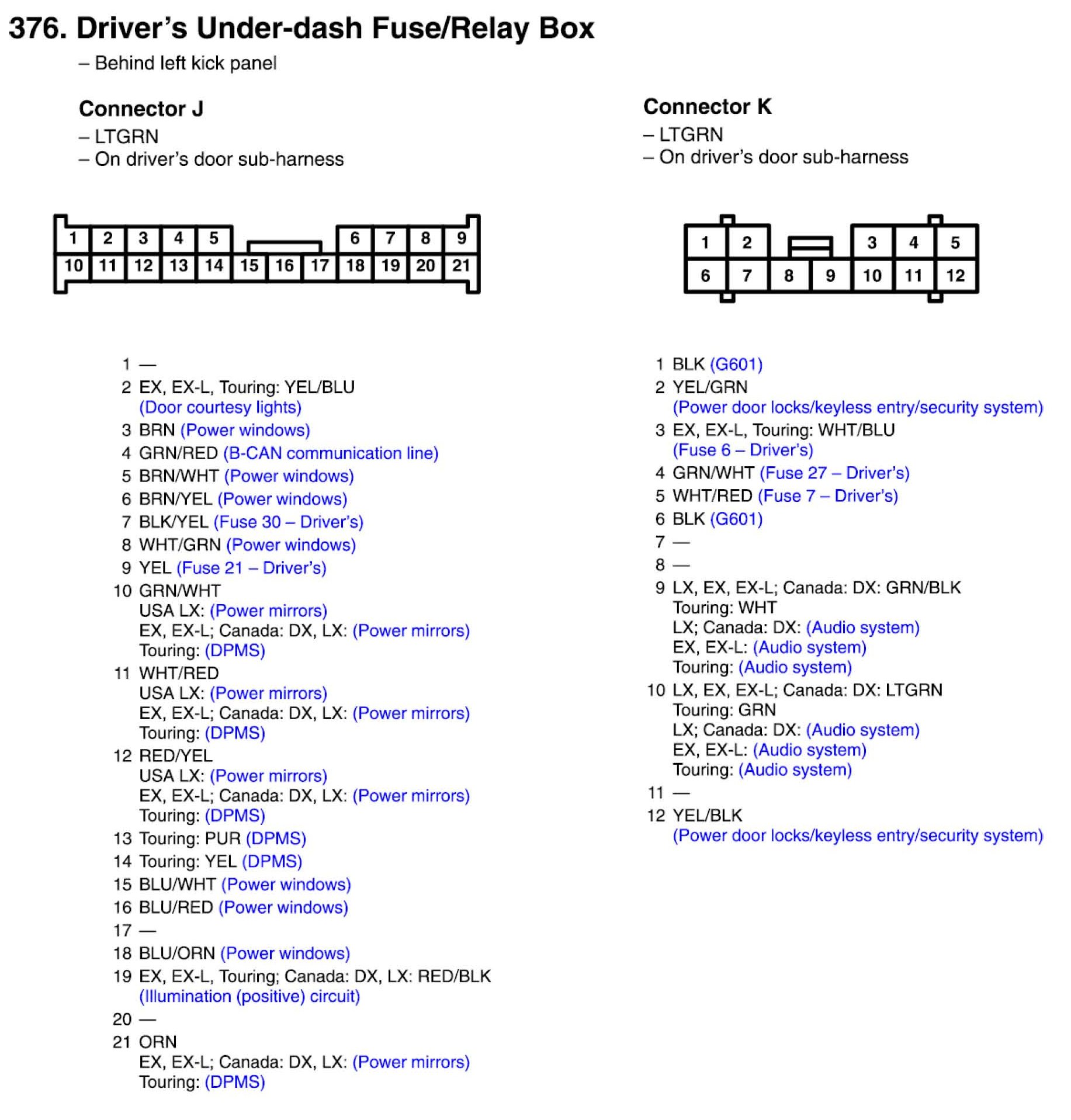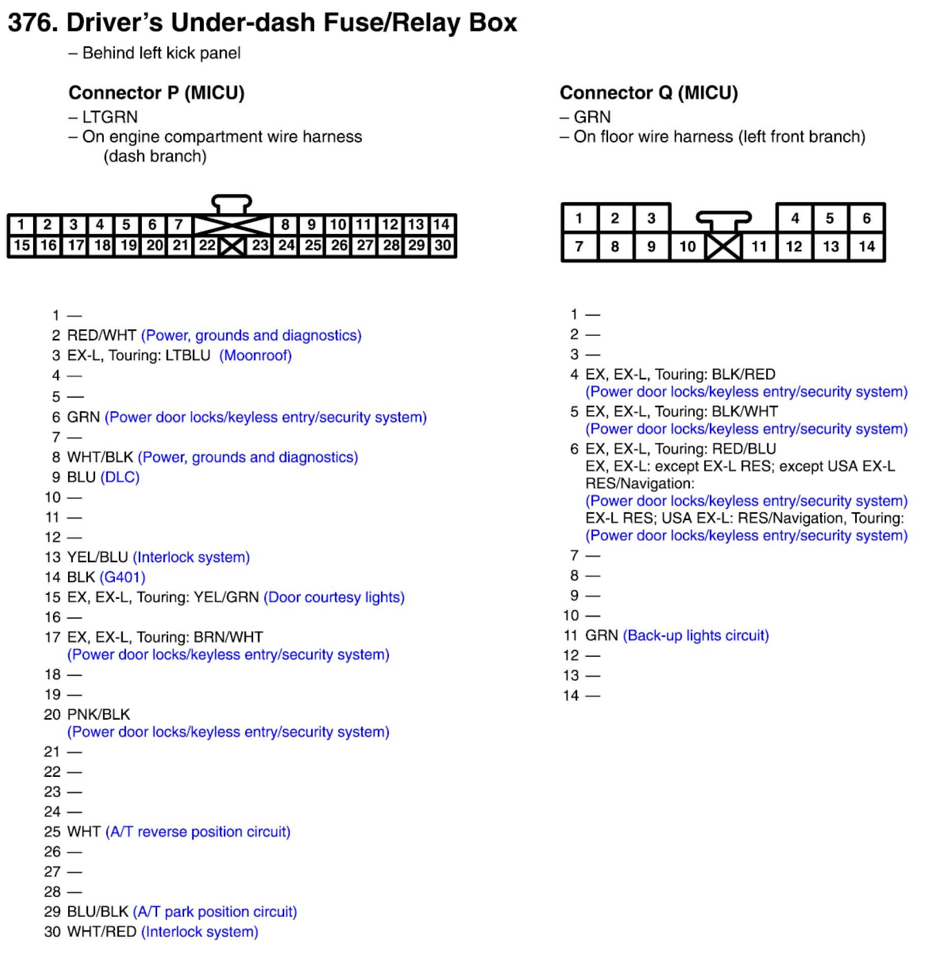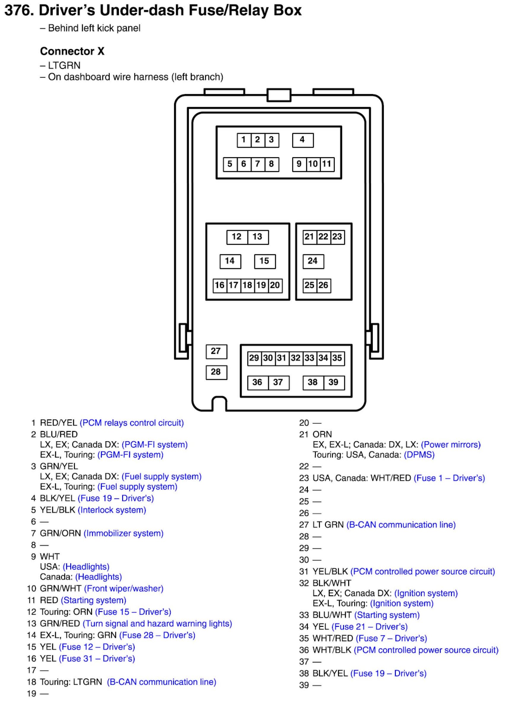 Driver's Under-dash Fuse/Relay Box Connector View
