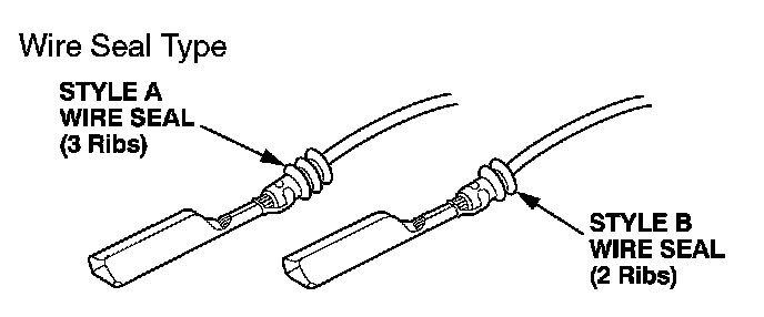Select the proper size pigtail terminal by matching the replacement terminal part number and the wire size being repaired to the corresponding pigtail terminal part number. Then use the color (size) splice connector listed. In some instances you may also have to match the wire seal style to select the proper pigtail terminal. Pigtail terminals are available through your parts department, in quantities of 10, using normal parts ordering procedures.