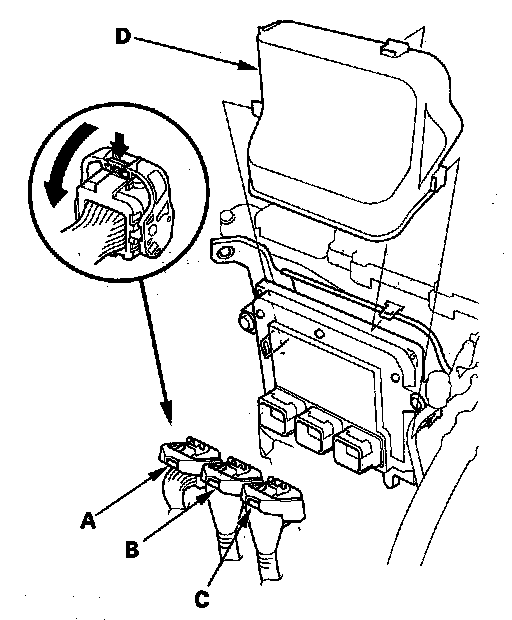 NOTE: PCM connectors A, B, and C have symbols (A=Rectangle, B=Square, C=Circle) embossed on them for identification.