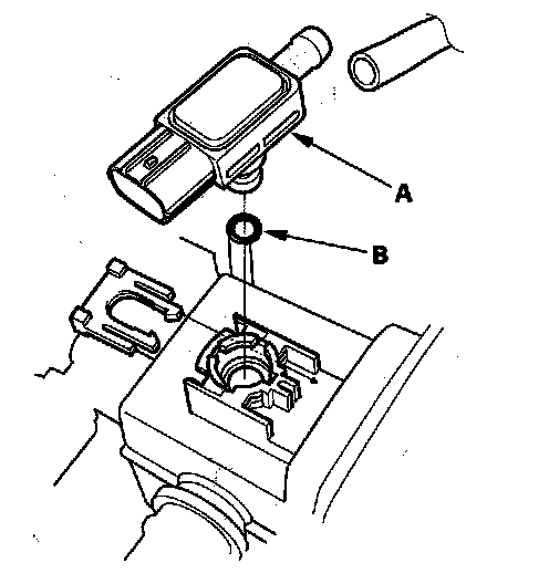 Install the parts in the reverse order of removal with a new O-ring (B).