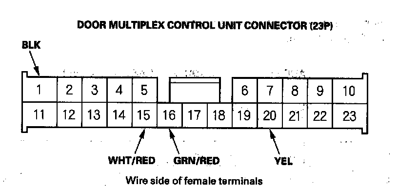 4. Reconnect the connector to the door multiplex control unit and make these input tests at the connector.