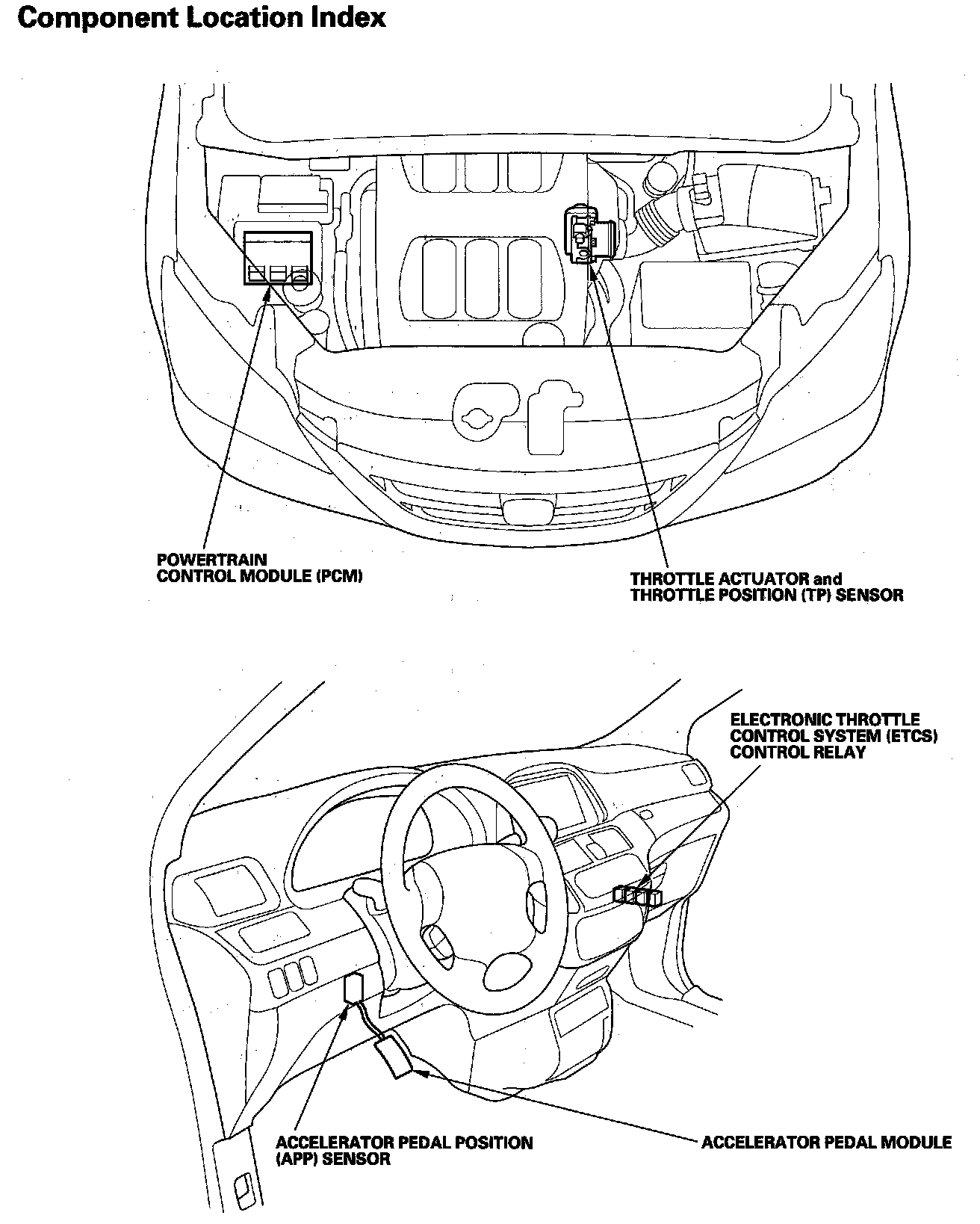 Electronic Throttle Control System Component Location Index: