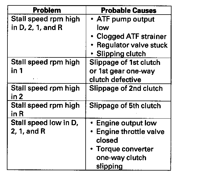 Stall Speed Test1. Make sure the transmission fluid is filled to the proper level.
