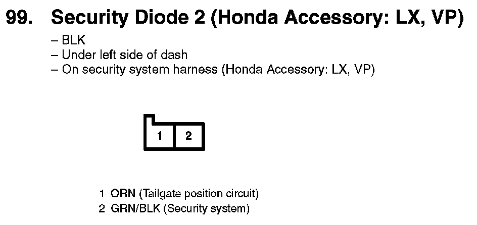 99. Security Diode 2 (Honda Accessory: LX, VP):